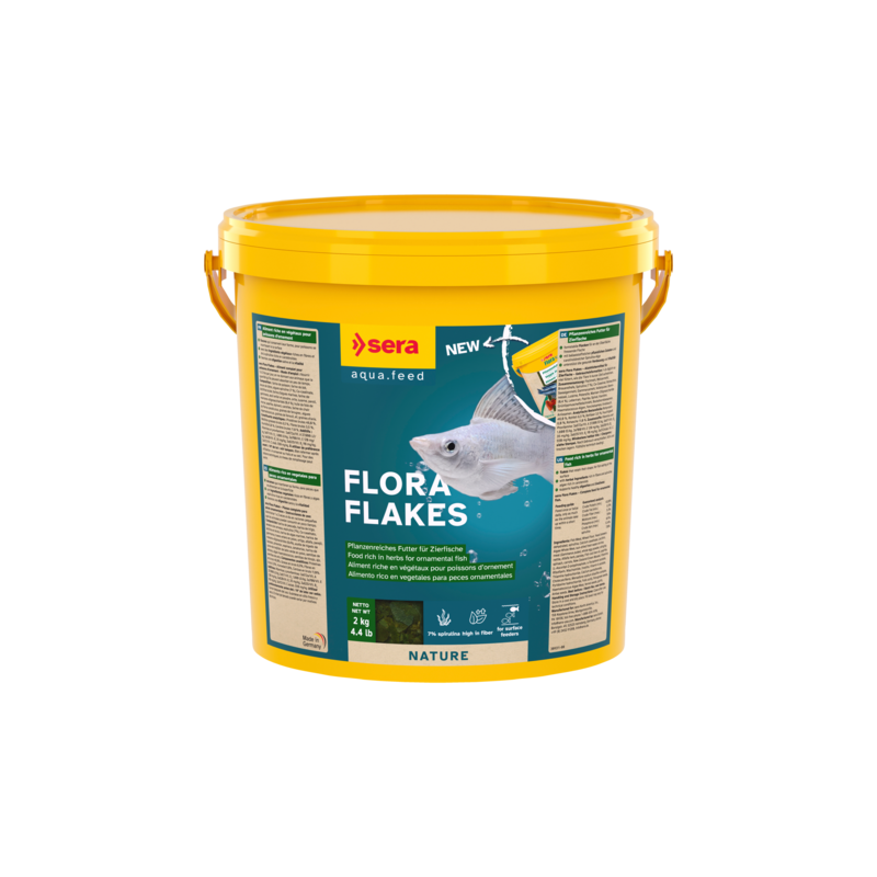 sera Flora Nature est l’aliment végétal pour tous les poissons d’ornement herbivores mangeant en surface, qui ne contient aucun colorant ni conservateur.