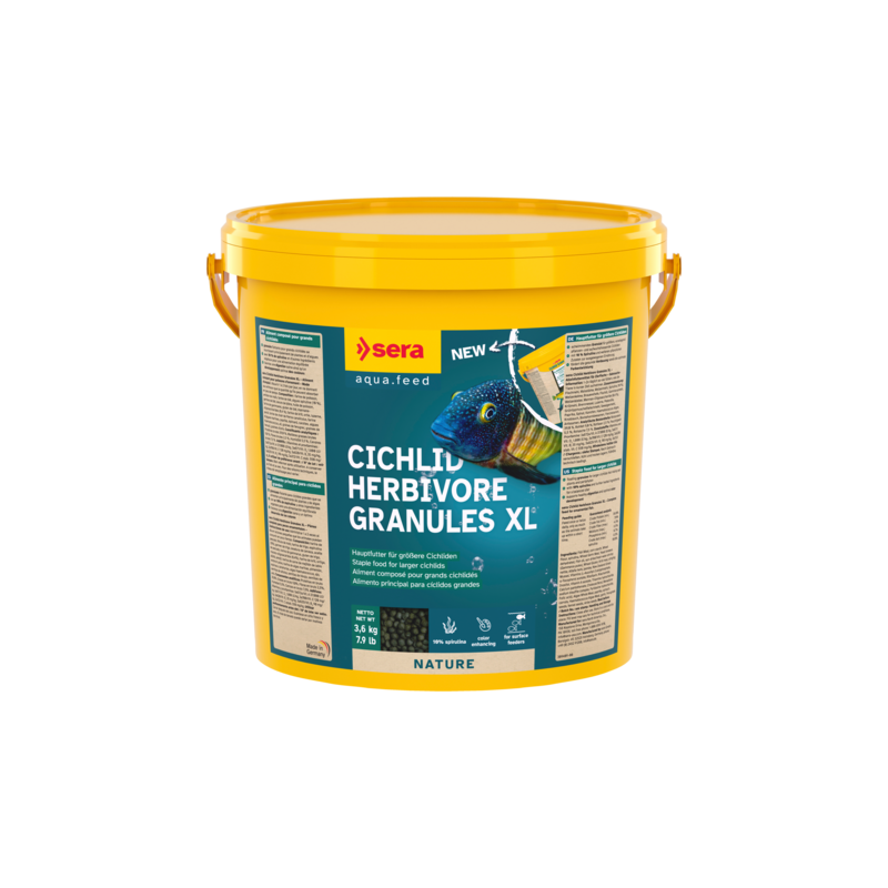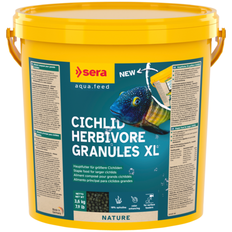sera Cichlid Green XL Nature est l’aliment composé sans colorants ni conservateurs à base de granulés fabriqués selon un procédé spécial. Il est particulièrement adapté aux grands cichlidés principalement herbivores et mangeurs d’algues et pour d’autres grands poissons.